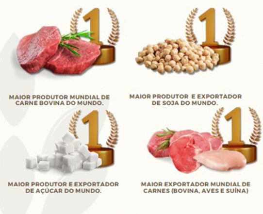 Alimentos e demais produtos do agronegócio brasileiro estão presentes em mais de 50 países. É um país que mais exporta produtos do que importa.